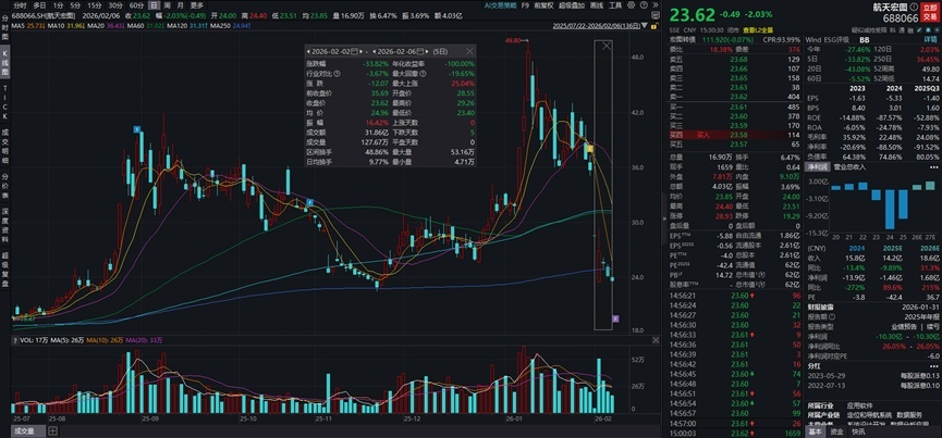 二级市场方面,航天宏图近一周累计跌幅近34%。